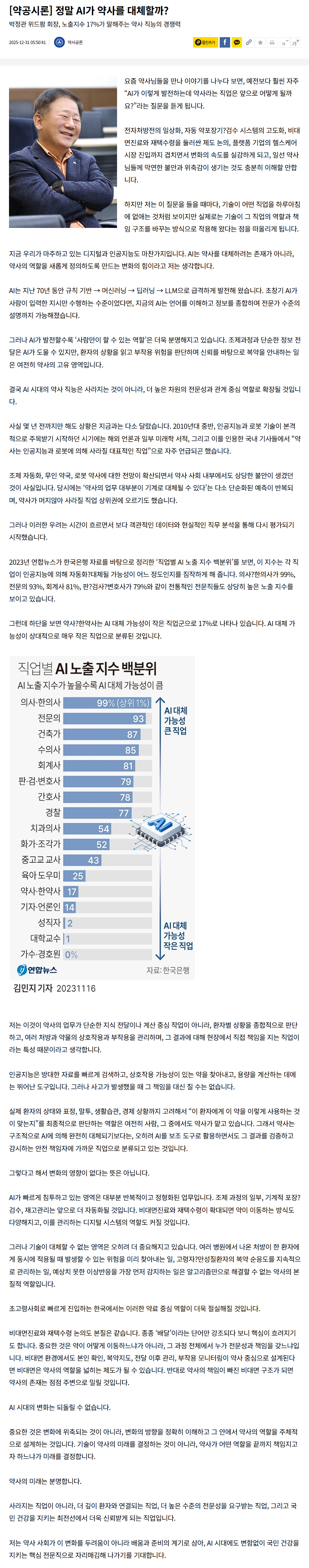 [약공시론] 정말 AI가 약사를 대체할까?
