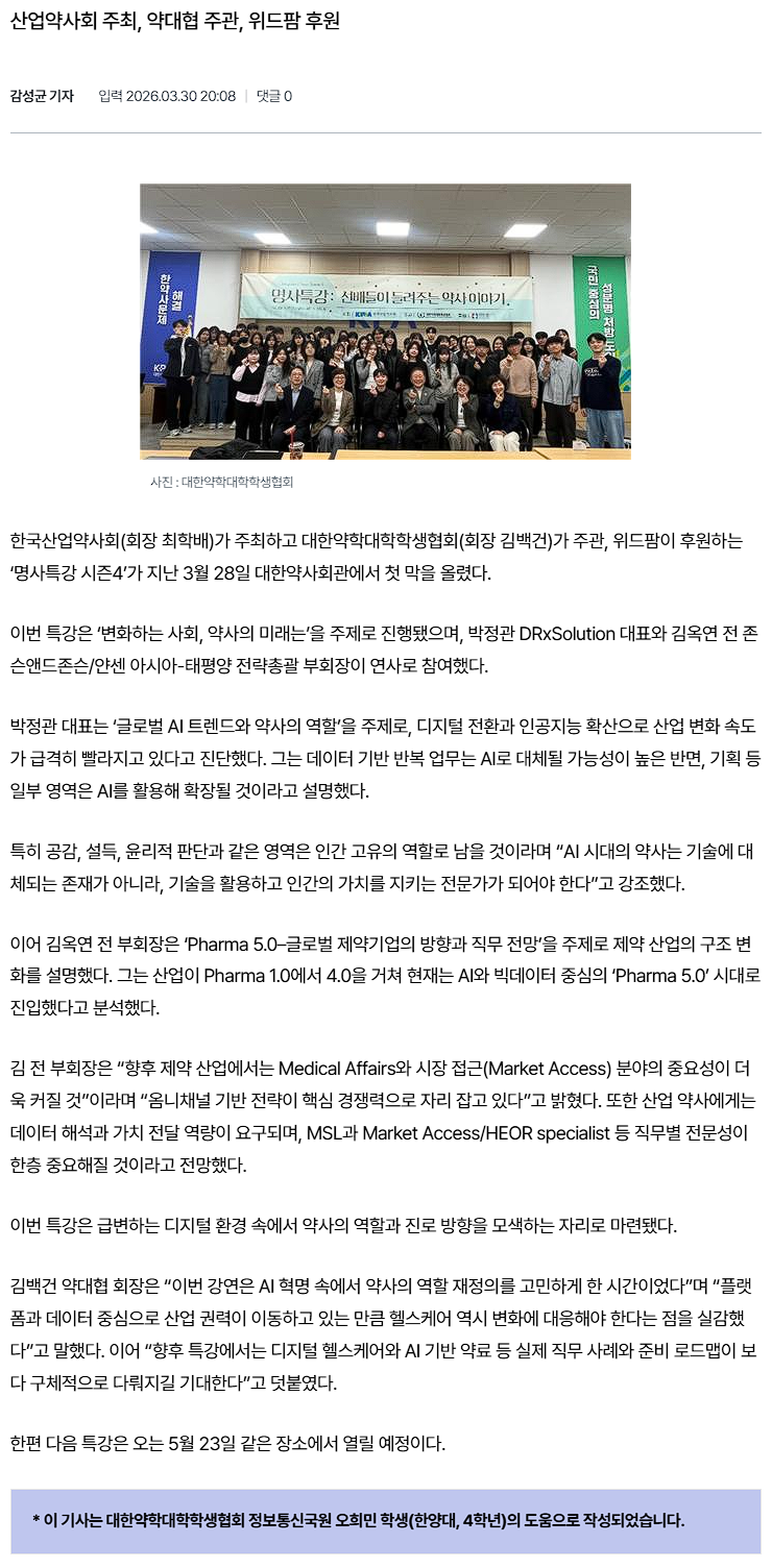 AI가 바꾸는 약사의 미래…명사특강 시즌4 '역할 재정의 필요'