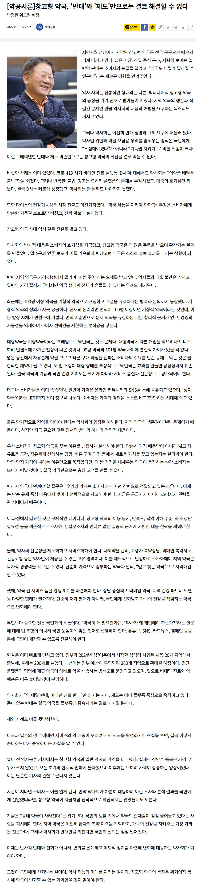 [약공시론]창고형 약국, '반대'와 '제도'만으로는 결코 해결할 수 없다