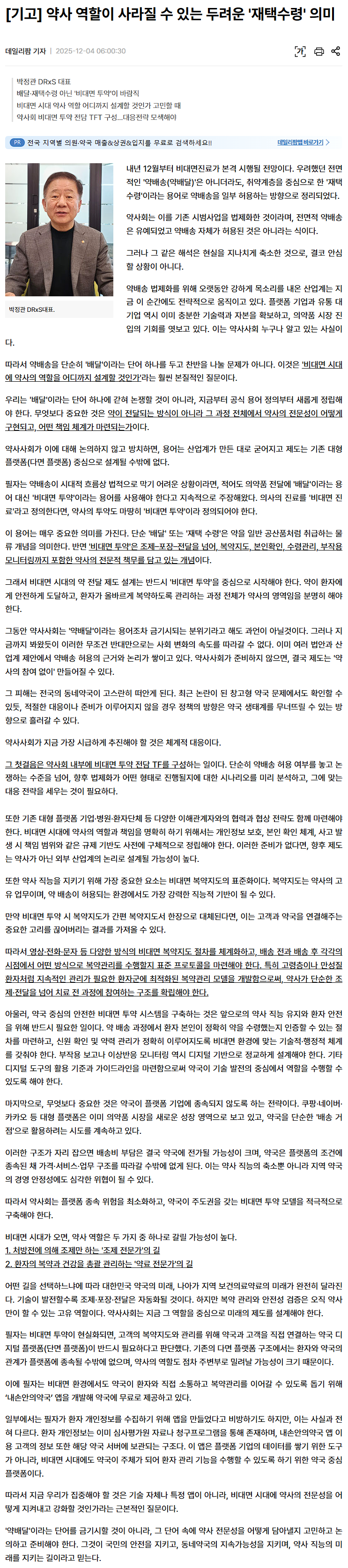 [기고] 약사 역할이 사라질 수 있는 두려운 '재택수령' 의미